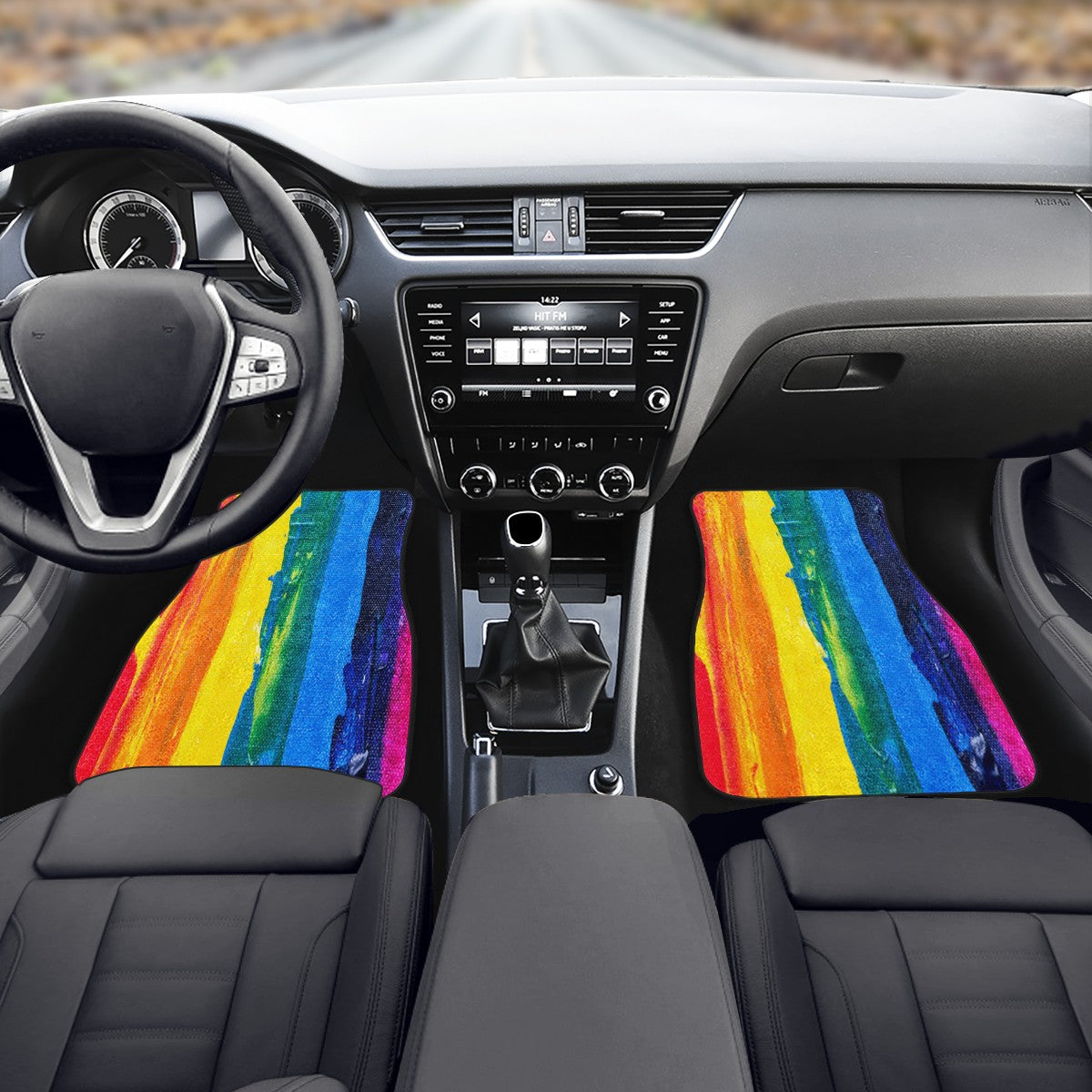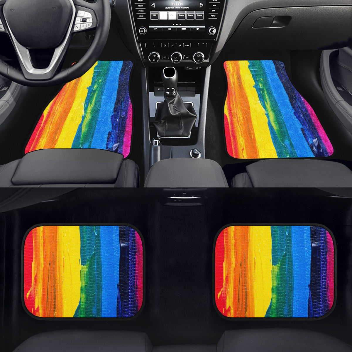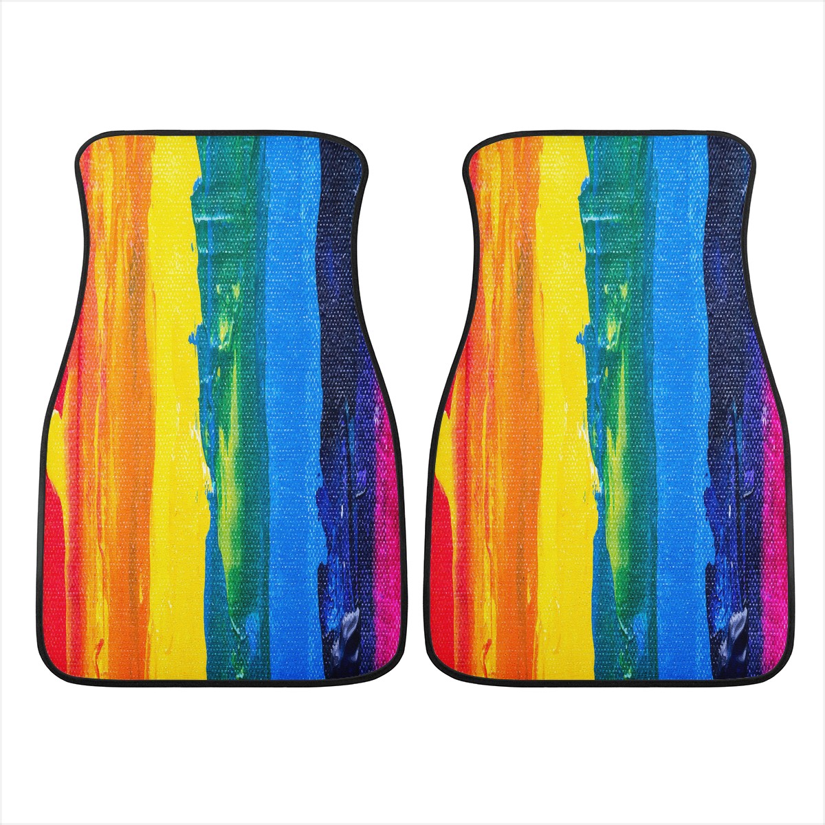 Vibrant Rainbow Painted Car Floor Mats - Custom Hippie Style Automotive Interior Accessories