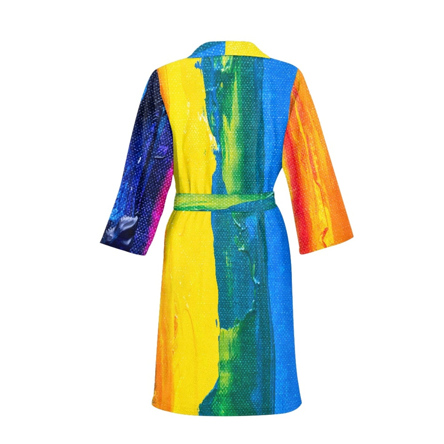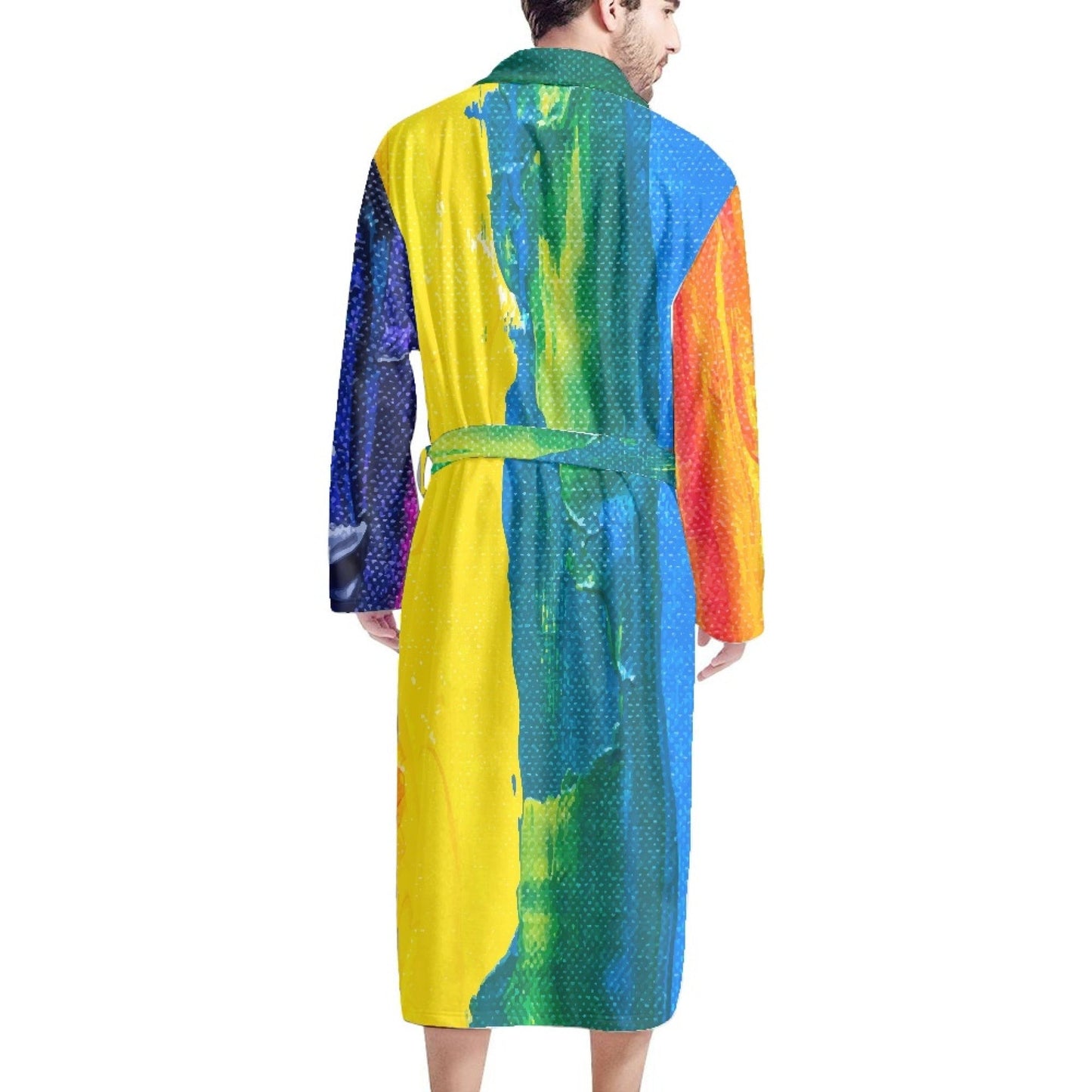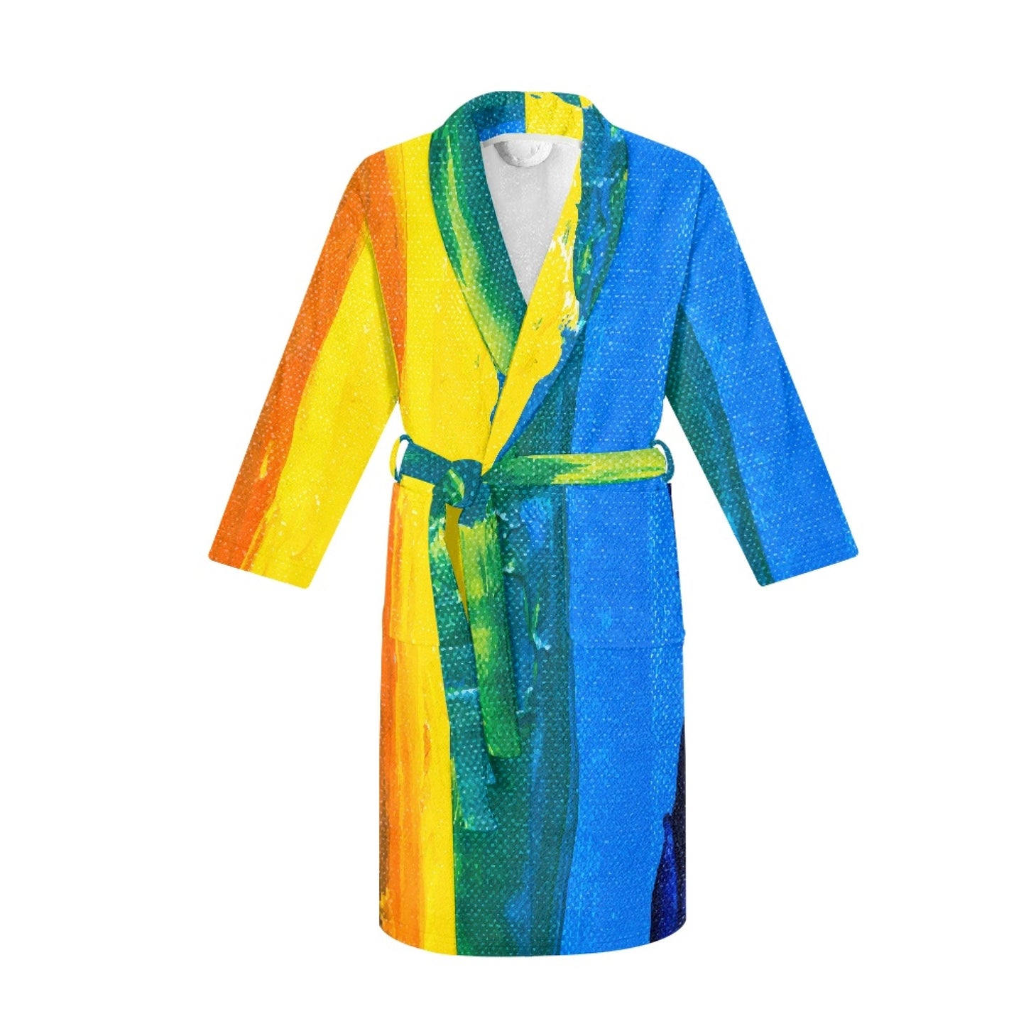 Shop Now and let the Rainbow Painting Men's Bathrobe by Luxtrini elevate your style to new heights of luxurious sophistication.