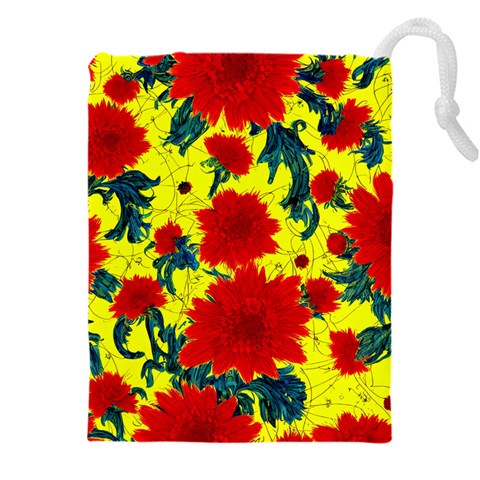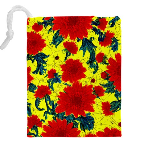 Red Flowers on Yellow Drawstring Pouch (5XL)