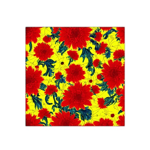 Red Flowers on Yellow Satin Bandana Scarf 22" x 22"