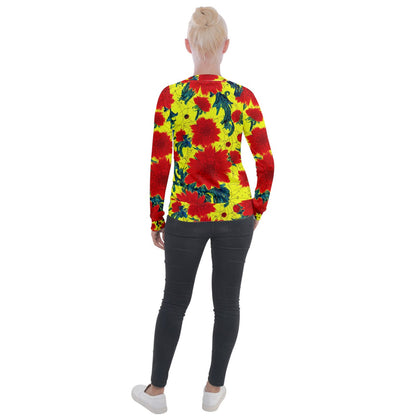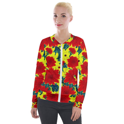 Red Flowers on Yellow Velvet Zip Up Jacket