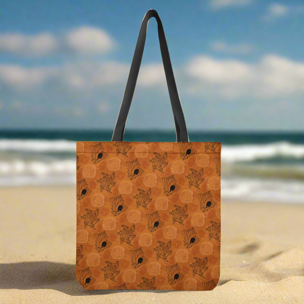 Sea Shell Ocean Design in Orange Cloth Tote Bags