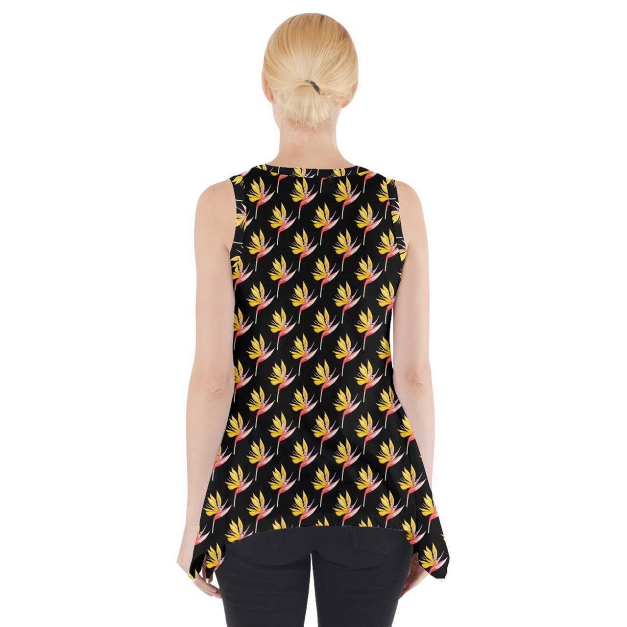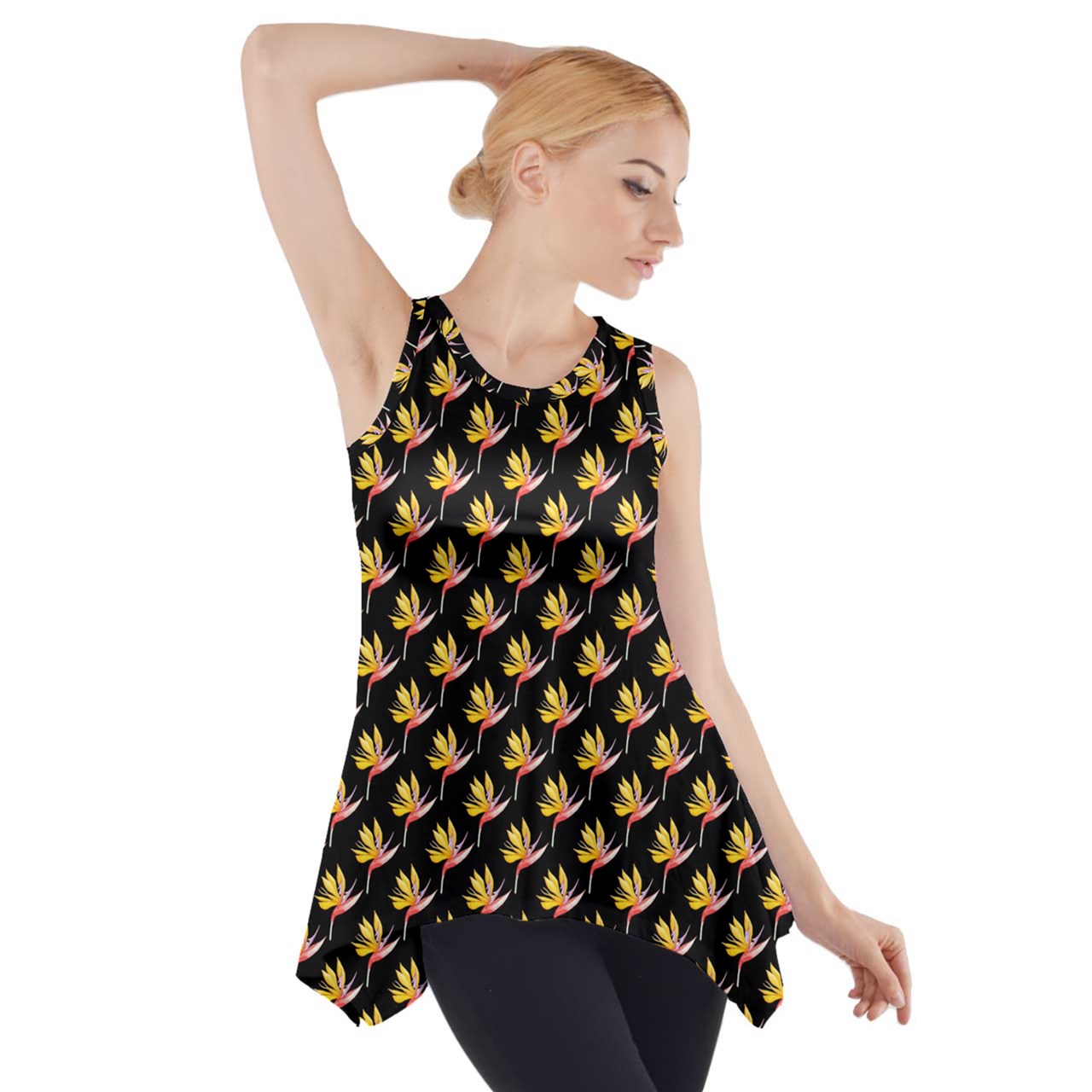 Bird of Paradise on Black Side Drop Tank Tunic | Tank Tunic | Tank Top