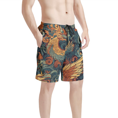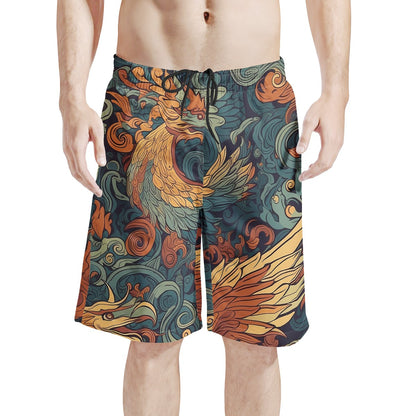 The Dragon and Phoenix are a harmonious duo, representing a balance of power and grace. Men's All Over Print Board Shorts