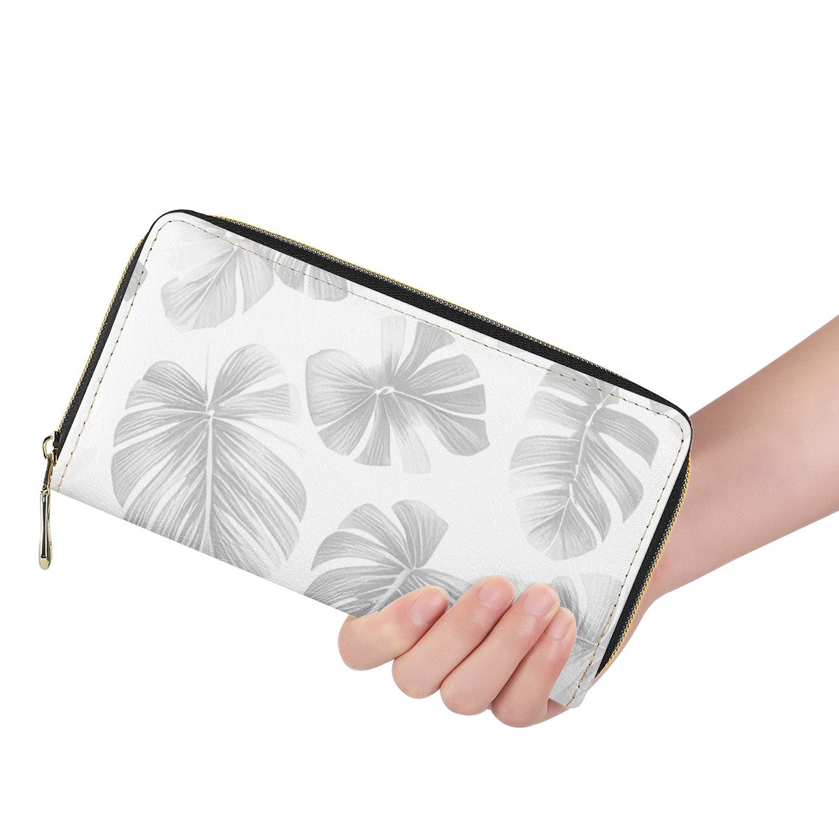 White Monstera L Zipper Purse